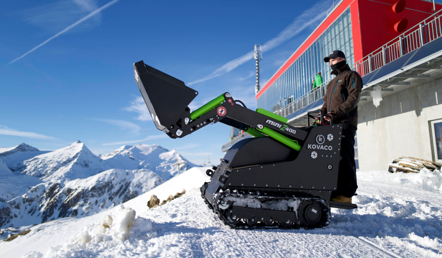 Na Mölltalském ledovci pomáhají oba naše 100% elektrické stroje, tedy kompaktní nakladač MINI Z 400 a smykový nakladač ELISE 900. První zmíněný stroj se podílí především na údržbě okolí budov včetně veřejných teras a vchodů. ELISE zastává práce v širokém okolí ledovce v čele s údržbou příjezdové cesty, ze které je nutné pravidelně odstraňovat sněhové závěje.